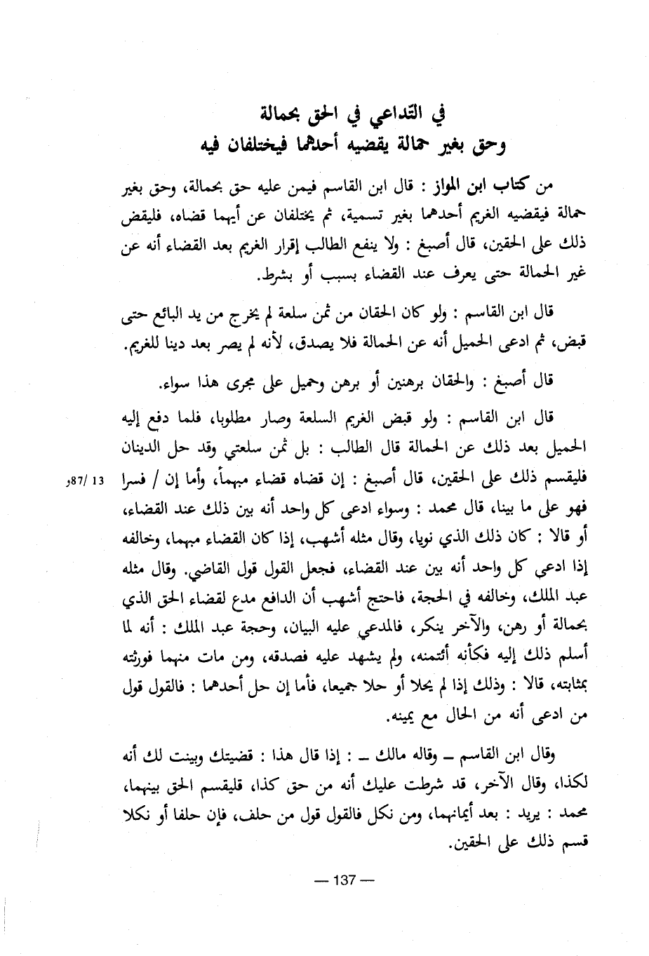 في التداعي في الحق بحمالة وحق بغير حمالة يقضيه أحدهما فيختلفان فيه