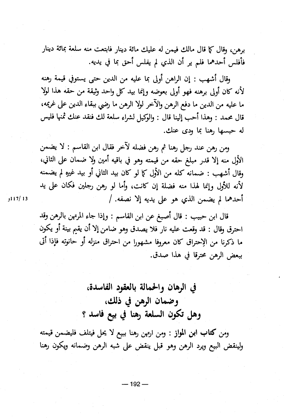 في الرهان والحمالة بالعقود الفاسدة، وضمان الرهن في ذلك، وهل تكون السلعة رهنا في بيع فاسد؟