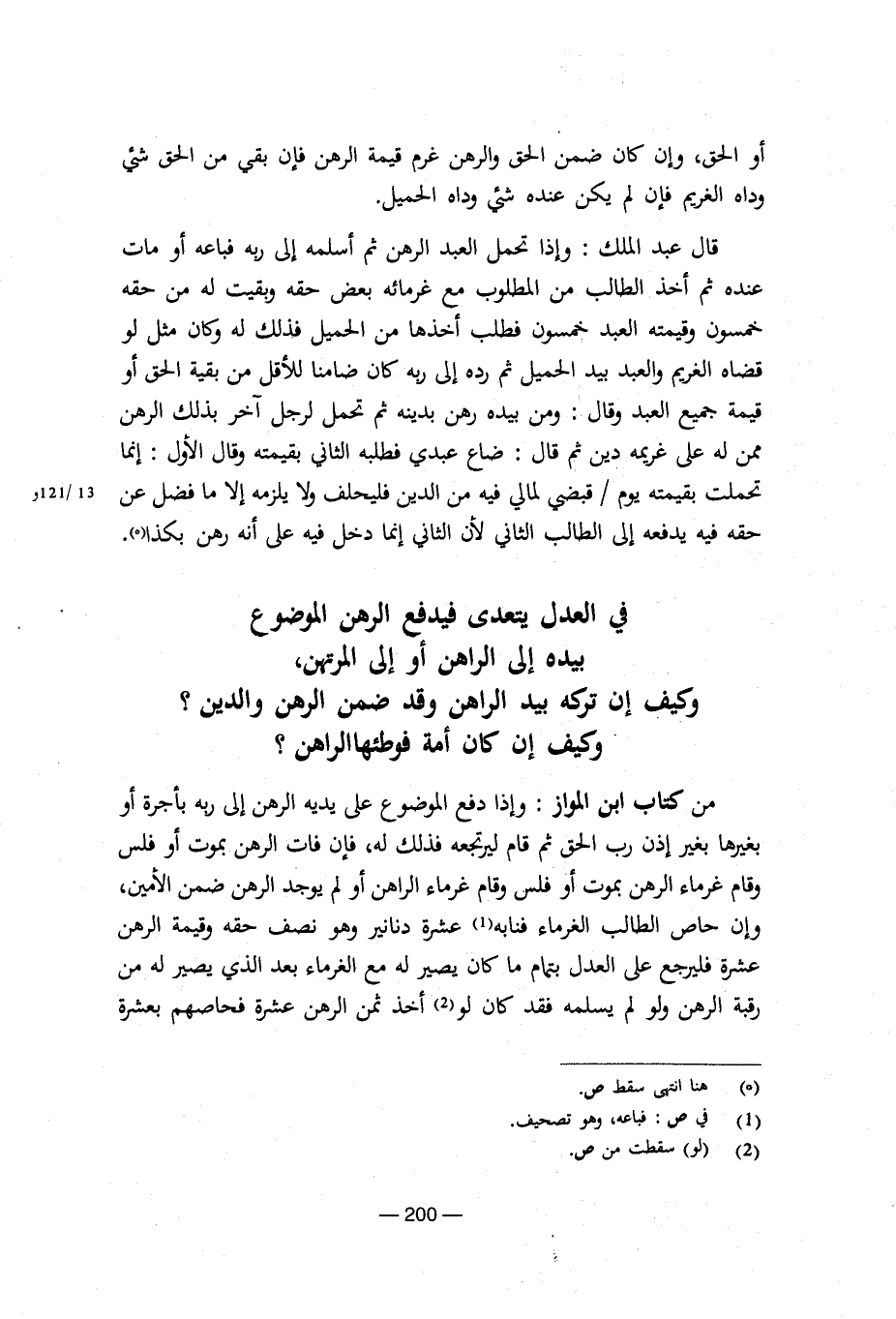 في العدل يتعدى فيدفع الرهن الموضوع بيده إلى الراهن أو إلى المرتهن، وكيف إن تركه بيد الراهن وقد ضمن الرهن والدين؟ وكيف إن كان أمة فوطئها الراهن؟