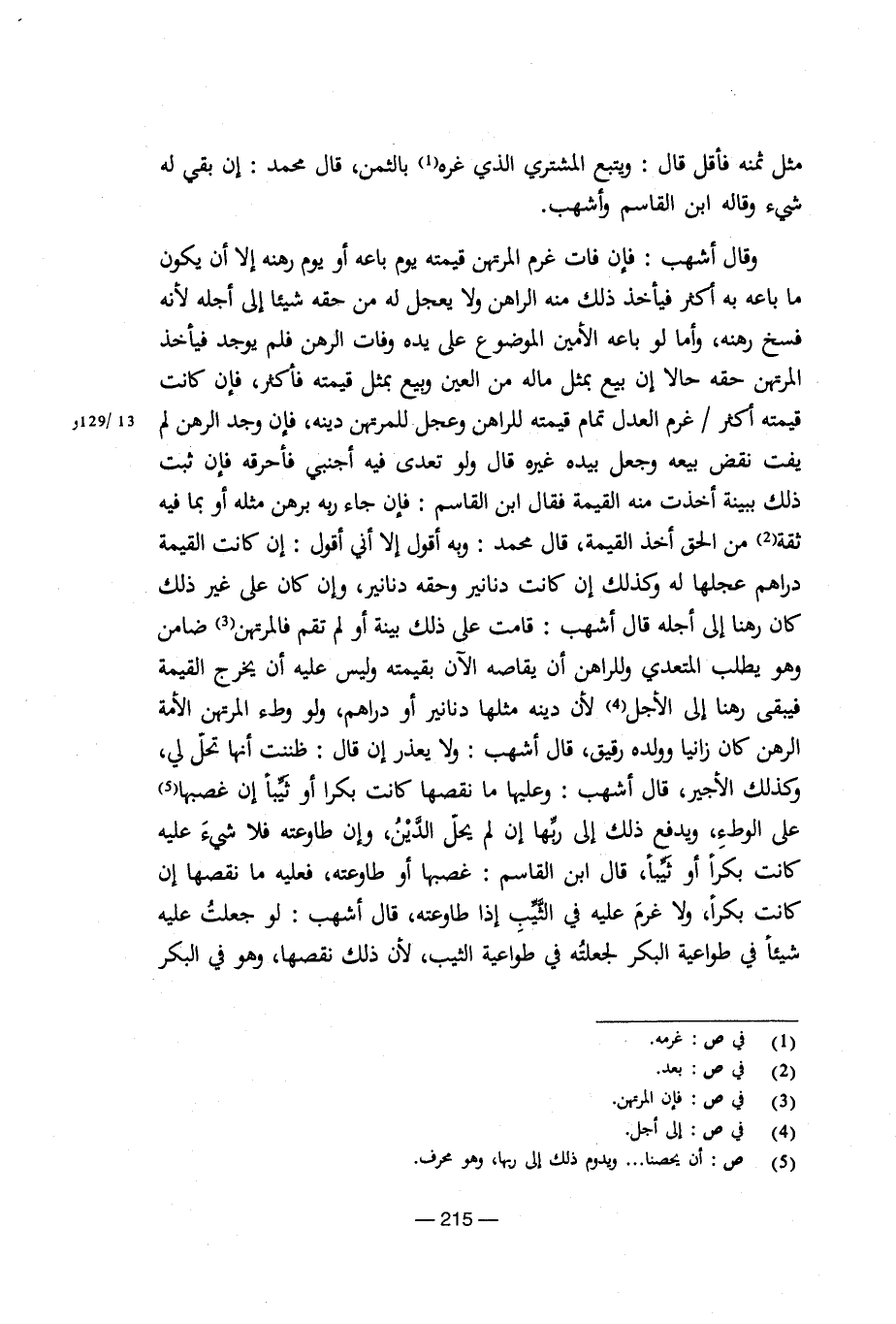 وقال أشهب: فإن غرم المرتهن قيمته يوم باعه أو يوم رهنه إلا أن يكون ما باعه به أكثر فيأخذ ذلك منه الراهن ولا يعجل له من حقه شيئا إلى أجله لأنه فسخ رهنه، وأما لو باعه الأمين الموضوع على يده وفات الرهن فلم يوجد فيأخذ المرتهن حقه حالا إن بيع بمثل ماله من العين وبيع بمثل قيمته فأكثر، فإن كانت قيمته أكثر/غرم العدل تمام قيمته للراهن وعجل للمرتهن دينه، فإن وجد الرهن لم يفت نقض أخذت منه القيمة فقال ابن القاسم: فإن جاء ربه برهن فأحرقه فإن ثبت ذلك ببينة أخذت منه القيمة فقال ابن القاسم: فإن جاء ربه برهن مثله أو بما فيه ثقة من الحق القيمة، قال محمد: وبه أقول إلا أبن أقول: إن كانت القيمة دراهم عجلها له وكذلك إن كانت دنانير وحقه دنانير، وإن كان على غير ذلك كان رهنا إلى أجله قال أشهب: قامت على ذلك بينة أو لم تقم فالمرتهن ضامن وهو يطلب المتعدي وللراهن أن يقاصه لآن بقيمته وليس عليه أن يخرج القيمة فيبقى رهنا إلى الأجل لأن دينه مثلها دنانير أو دراهم، ولو وطء المرتهن الأمة الرهن كان زانيا وولده رقيق، قال أشهب: ولا يعذر إن قال: ظننت أنها تحل لي، وكذلك الأجير، قال أشهب: وعليها ما نقصها كانت بكرا أو ثيبا إن غصبها على الوطء، ويدفع ذلك إلى ربها إن لم يحل الدين، وإن طاوعته فلا شيء عليه كانت بكرا أو ثيبا، قال ابن القاسم: غصبها أو طاوعته، فعليه ما نقصها إن كانت بكرا، ولا غرم عليه في الثيب إذا طاوعته، قال أشهب: لو جعلت عليه شيئا في طواعية البكر لجعلته في طواعية الثيب، لأن ذلك نقصها، وهو في البكر