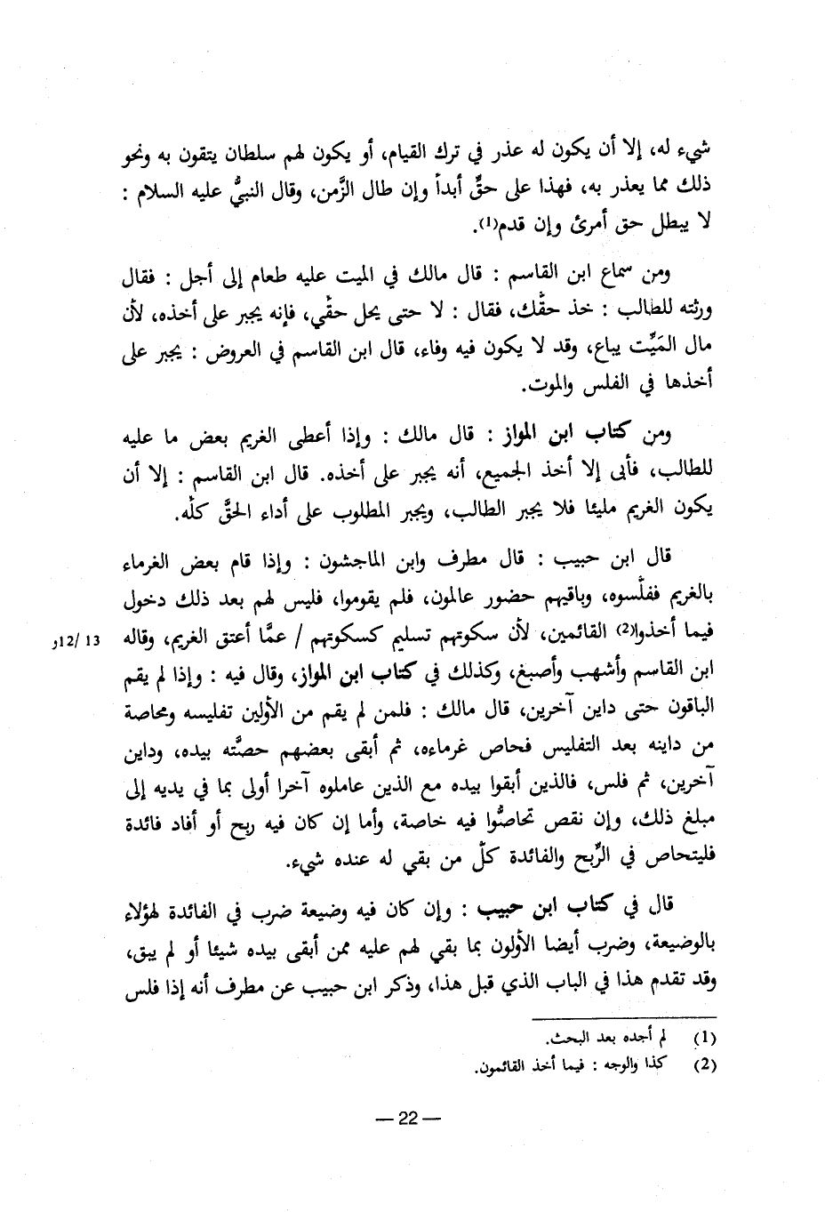 قال ابن حبيب: قال مطرف وابن الماجشون: وإذا قام بعض الغرماء بالغريم ففقلسوه، وباقيهم حضور عالمون، فلم يقوموا، فليس لهم بعد ذلك دخول فيما أخذوا القائمين، لأن سكوتهم تسليم كسكوتهم/عما أعتق الغريم، وقاله ابن القاسم وأشهب وأصبغ، وكذلك في كتاب ابن المواز، وقال فيه: وإذا لم يقم الباقون حتى داين آخرين، قال مالك: فلمن لم يقم من الأولين تفليسه ومحاصة من داينه بعد التفليس فحاص غرماءه، ثم أبقي بعضهم حصته بيده، وداين آخرين، ثم فلس، فالذين أبقوا بيده مع الذين عاملوه آخرا أولى بما في يديه إلى مبلغ ذلك، وإن نقص تحاصوا فيه خاصة، وأما إن كان فيه ربح أو أفاد فائدة فليتحاص في الربح والفائدة كل من بقي له عنده شيء.