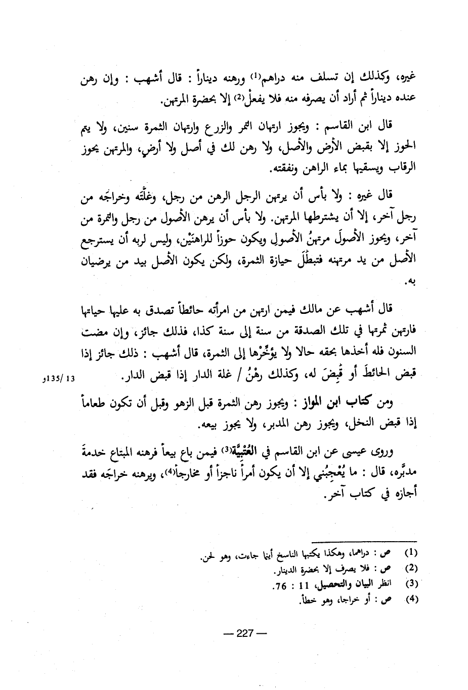 غيرن وكذلك إن تسلف منه دراهم ورهنه دينارا: قال أشهب: وإن وهن عنده دينارا ثم أراد أن يصرفه منه فلا يفلا يفعل إلا بخضرة المرتهن. قال ابن القاسم: ويجوز ارتهان التمر والزرع وارتهان الثمرة سنين، ولا يعم الحوز إلا بقبض الأرض والأصل، ولا رهن لك في ولا أرض، والمرتهن يحوز الرقاب ويسقبها بماء الراهن ونفقته.