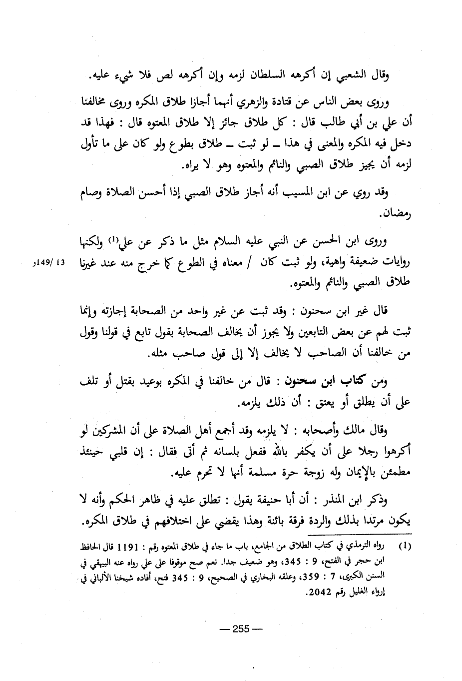 وروي ابن الحسن عن النبي عليه السلام مثل ما ذكر عن علي ولكنها روايات ضعيفة واهية، ولو ثبت كان/معناه في الطوع كما خرج منه عند غيرنا طلاق الصبي والنائم والمعتوه.