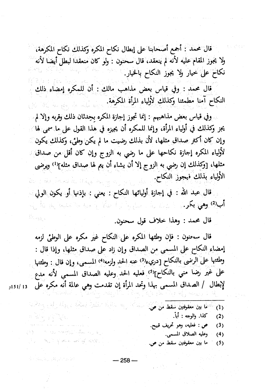 قال محمد: أجمع أصحابنا على ابطال نكاح المكره وكذلك نكاح المكرهة، ولا يجوز المقام عليه لأنه لم ينعقد، قال سحنون: ولو كان منعقدا لبطل أيضًا لأيه نكاح على خيار ولا يجوز النكاح بالخيار.
