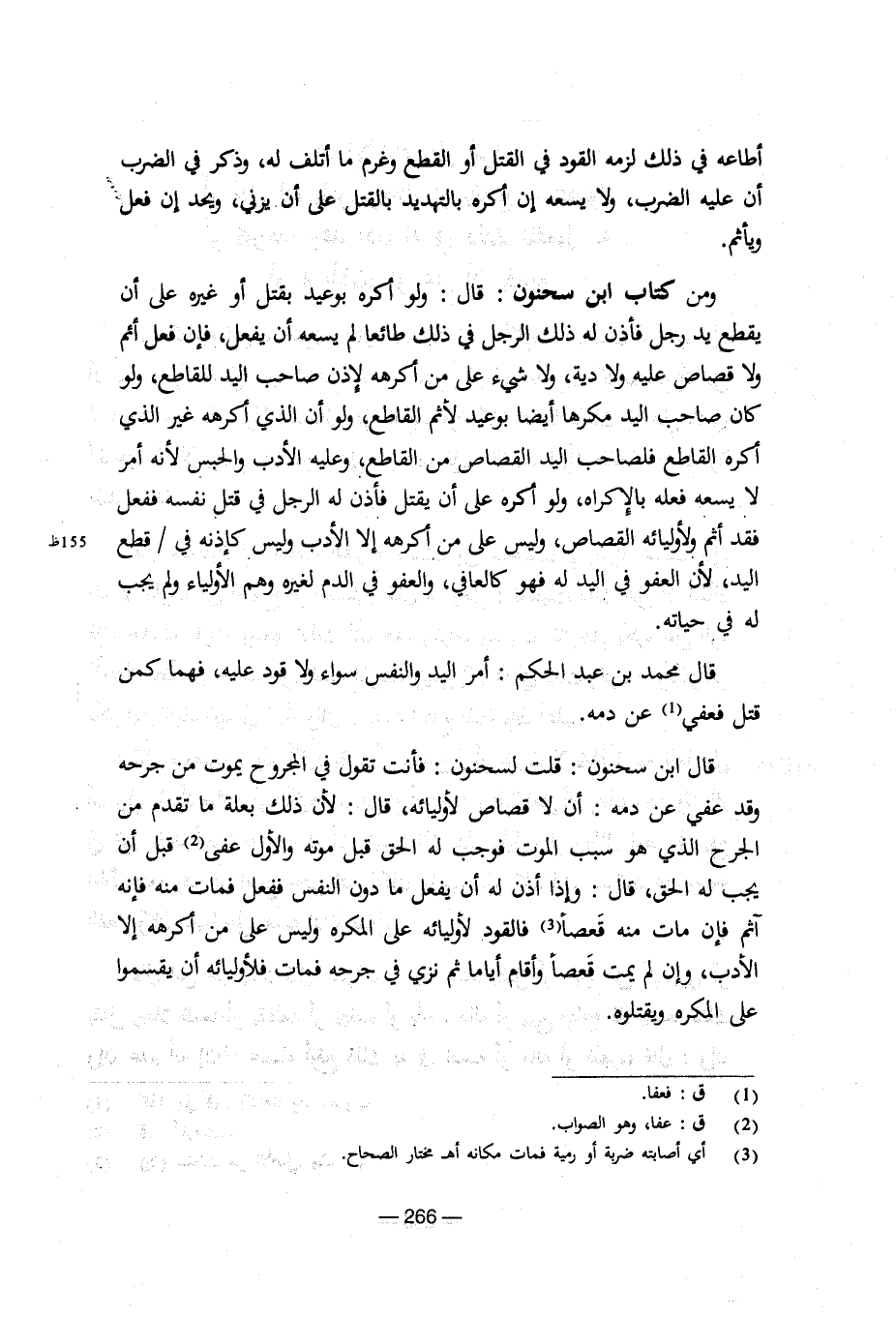قال ابن سحنون: قلت لسحنون: فأنت تقول في المجروح يموت من جرحه وقد عفي عن دمه: أن لا قصاص لأوليائه، قال: لأن ذلك بعلة ما تقدم من الجرح الذي هو سبب الموت فوجب له الحق قبل موته والأول عفي قبل أن يجب له الحق، قال: وإذا أذن له أن يفعل ما دون النفس ففعل فمات منه فإنه آثم فإن مات منه قعصا فالقود لأوليائه على المكره وليس على من أكرهه إلا الأدب، وإن لم يمت قعصا وأقام أياما ثم نزي في جرحه فمات فلأوليائه أن يقسموا على المكره ويقتلوه.