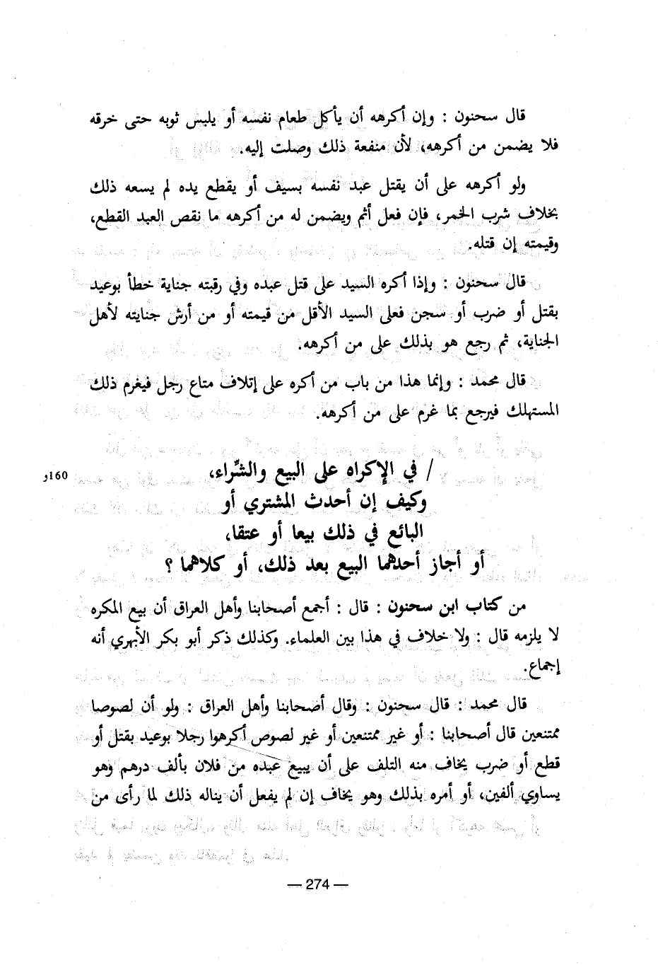 قال محمد: قال سحنون: وقال أصحابنا وأهل العراق: ولو أن لصوصا ممتنعين قال أصحابنا: أو غير ممتنعين أو غير لصوص أكرهوا رجلا بوعيد بقتل أو قطع أو قطع أو ضرب يخاف منه التلف على أن يبيع عبده من فلان بألف درهم وهو يساوي ألفين، أو أمره بذلك وهو يخاف إن لم يفعل أن يناله ذلك لما رأى من