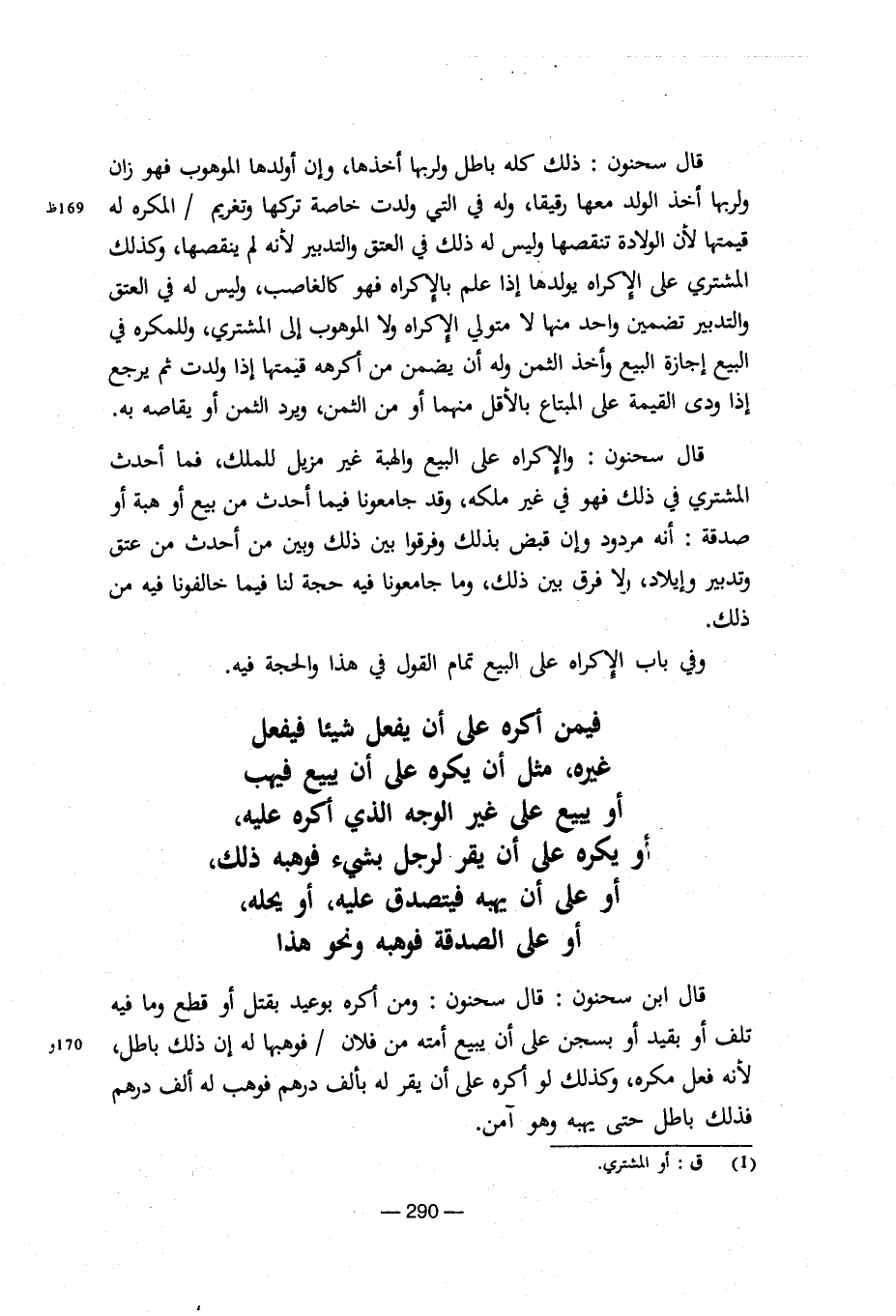 قال سحنون: ذلك كله باطل ولربها أخذها، وإن أولدها الموهوب فهو زان ولربها أخذ الولد معها رقيقا، وله في التي ولدت خاصة تركها وتغريم/المكره له قيمتها لأن الولادة تنقصها وليس له ذلك في العتق والتدبير لأنه لم ينقصها، وكذلك المشتري على الإكراه يولدها إذا علم بالإكراه فهو كالغاصب، وليس له في العتق والتدبير تضمين واحد منها لا متولي الإكراه ولا الموهوب إلى المشتري، وللمكره في البيع إجازة البيع وأخذ الثمن وله أن يضمن من أكرهه قيمتها إذا ولدت ثم يرجع إذا ودي القيمة على المبتاع بالأقل منها أو من الثمن، ويرد الثمن أو يقاصه به. قال سحنون: والإكراه علي البيع والهبة غير مزيل للملك، فما أحدث المشتري في ذلك فهو في غير ملكه، وقد جامعونا فيما أحدث من بيع أو هبة أو صدقة: أنه مردود وإن قبض بذلك وفرقوا بين ذلك وبين من أحدث من عتق وتدبير وإيلاد، ولا فرق ببين ذلك، وما جامعونا فيه حجة لنا فيما خالفونا فيه من ذلك.