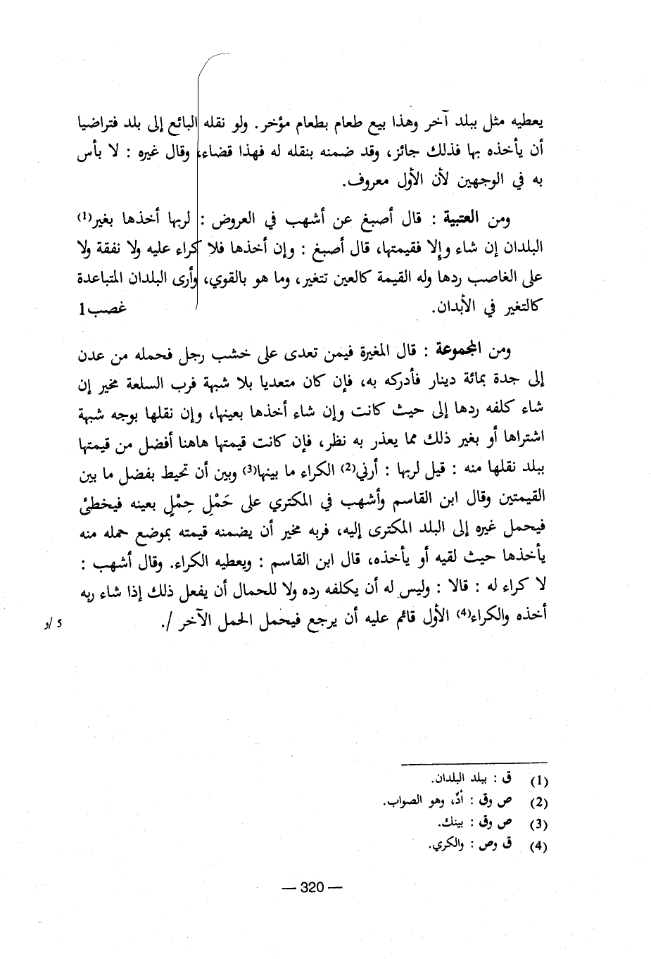 ومن المجموعة: قال المغيرة فيمن تعدى على خشب رجل فحمله من عدن إلى جدة بمائة دينار فأدركه به، فإن كان متعديا بلا شبهة فرب السلعة مخير إن شاء كلفه ردها إلى حيث كانت وإن شاء أخذها بعينها، وإن نقلها بوجه شبهة اشتراها أو بغير ذلك مما يعذر به نظر، فإن كانت قيمتها هاهنا أفضل من قيمتها ببلد نقلها منه: قيل لربها: أرني الكراء ما بينها وبين أن تحيط بفضل ما بين القيمتين وقال ابن القاسم وأشهب في المكتري على حمل حمل بعينه فيخطئ فيحمل غيره إلى البلد المكترى إليه، فربه مخير أن يضمنه قيمته بموضع حمله منه يأخذها حيث لقيه أو يأخذه، قال ابن القاسم: ويعطيه الكراء. وقال أشهب: لا كراء له: قالا: وليس له أن يكلفه رده ولا للحمال أن يفعل ذلك إذا شاء ربه أخذه والكراء الأول قائم عليه أن يرجع فيحمل الحمل الآخر/.