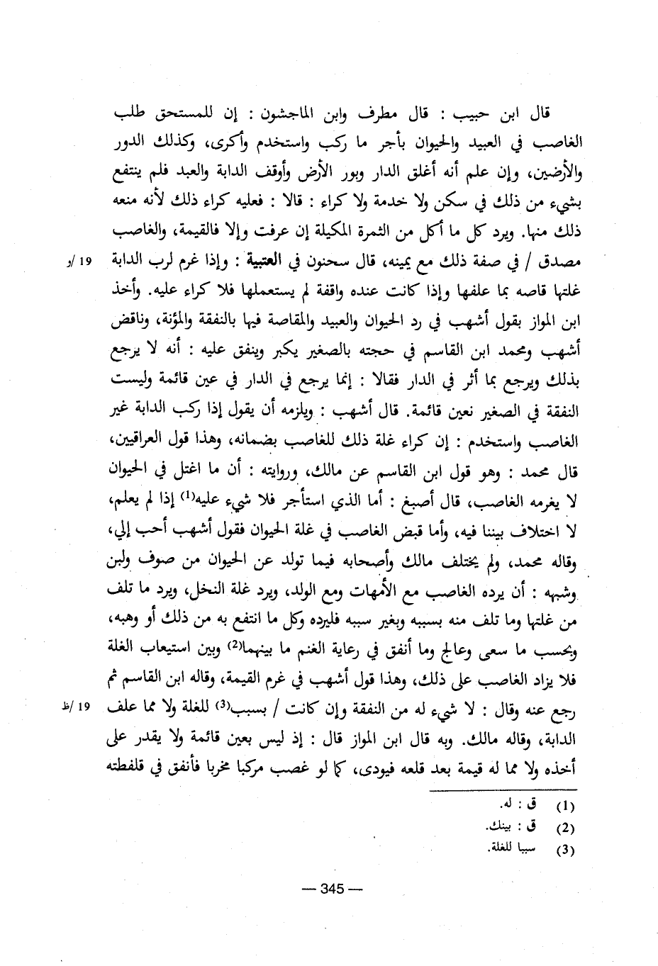 قال ابن حبيب: قال مطرف وابن الماجشون: إن للمستحق طلب الغاصب في العبيد والحيوان بأجر ما ركب واستخدم وأكرى، وكذلك الدور والأرضين، وإن علم أنه أغلق الدار وبور الأرض وأوقف الدابة والعبد فلم ينتفع بشيء من ذلك في سكن ولا خدمة ولا كراء: قالا: فعليه كراء ذلك لأنه منعه ذلك منها. ويرد كل ما أكل من الثمرة المكيلة إن عرفت وإلا فالقيمة، والغاصب مصدق/في صفة ذلك مع يمينه، قال سحنون في العتبية: وإذا غرم لرب الدابة غلتها قاصة بما علفها وإذا كانت عنده واقفة لم يستعملها فلا كراء عليه. وأخذ ابن المواز بقول أشهب في رد الحيوان والعبيد والمقاصة فيها بالنفقة والمؤنة، وناقض أشهب ومحمد ابن القاسم في حجته بالصغير يكبر وينفق عليه: أنه لا يرجع بذلك ويرجع بما أثر في الدار فقالا: إنما يرجع في الدار في عين قائمة وليست النفقة في الصغير نعين قائمة. قال أشهب: ويلزمه أن يقول إذا ركب الدابة غير الغاصب واستخدم: إن كراء غلة ذلك للغاصب بضمانه، وهذا قول العراقيين، قال محمد: وهو قول ابن القاسم عن مالك، وروايته: أن ما اغتل في الحيوان لا يغرمه الغاصب، قال أصبغ: أما الذي استأجر فلا شيء عليه إذا لم يعلم، لا اختلاف بيننا فيه، وأما قبض الغاصب في غلة الحيوان فقول أشهب أحب إلي، وقاله محمد، ولم يختلف مالك وأصحابه فيما تولد عن الحيوان من صوف ولبن وشبهه: أن يرده الغاصب مع الأمهات ومع الولد، ويرد غلة النخل، ويرد ما تلف من علتها وما تلف منه بسببه وبغير سببه فليرده وكل ما انتفع به من ذلك أو وهبه، وبحسب ما سعى وعالج وما أنفق في رعاية الغنم ما بينهما وبين استيعاب الغلة فلا يزاد الغاصب على ذلك، وهذا قول أشهب في غرم القيمة، وقاله ابن القاسم ثم رجع عنه وقال: لا شيء له من النفقة وإن كانت/بسبب للغلة ولا مما علف الدابة، وقاله مالك. وبه قال ابن المواز قال: إذ ليس بعين قائمة ولا يقدر على أخذه ولا مما له قيمة بعد قلعه فيودى، كما لو غصب مركبا مخربا فأنفق في قلفطته