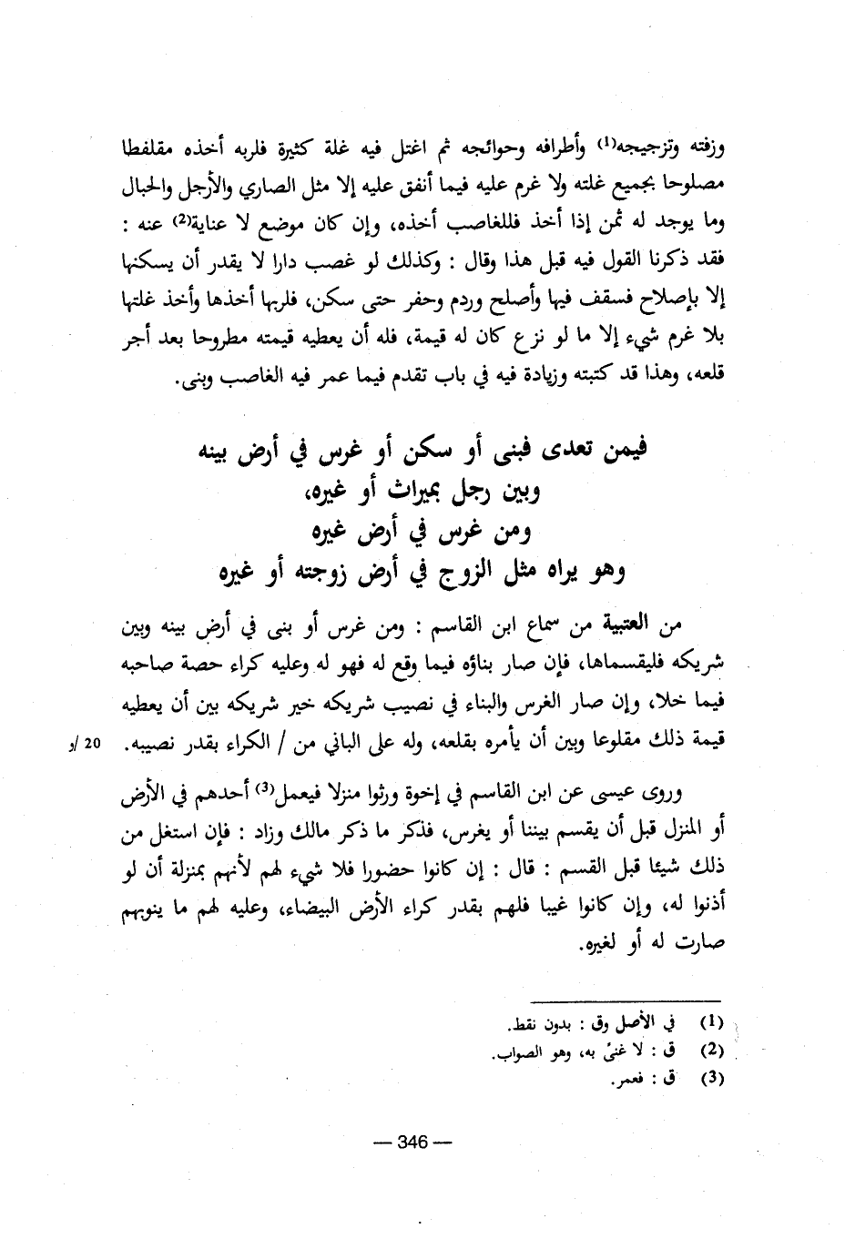 فيمن تعدي فبني أو سكن أو غرس في أرض بينه وبين رجل بميراث أو غيره، ومن غرس في أرض غيره وهو يراه مثل الزوج في أرض زوجته أو غيره