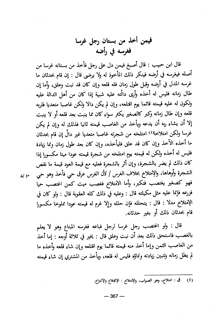 فيمن أخذ من بستان رجل غرسا فغرسه في أرضه