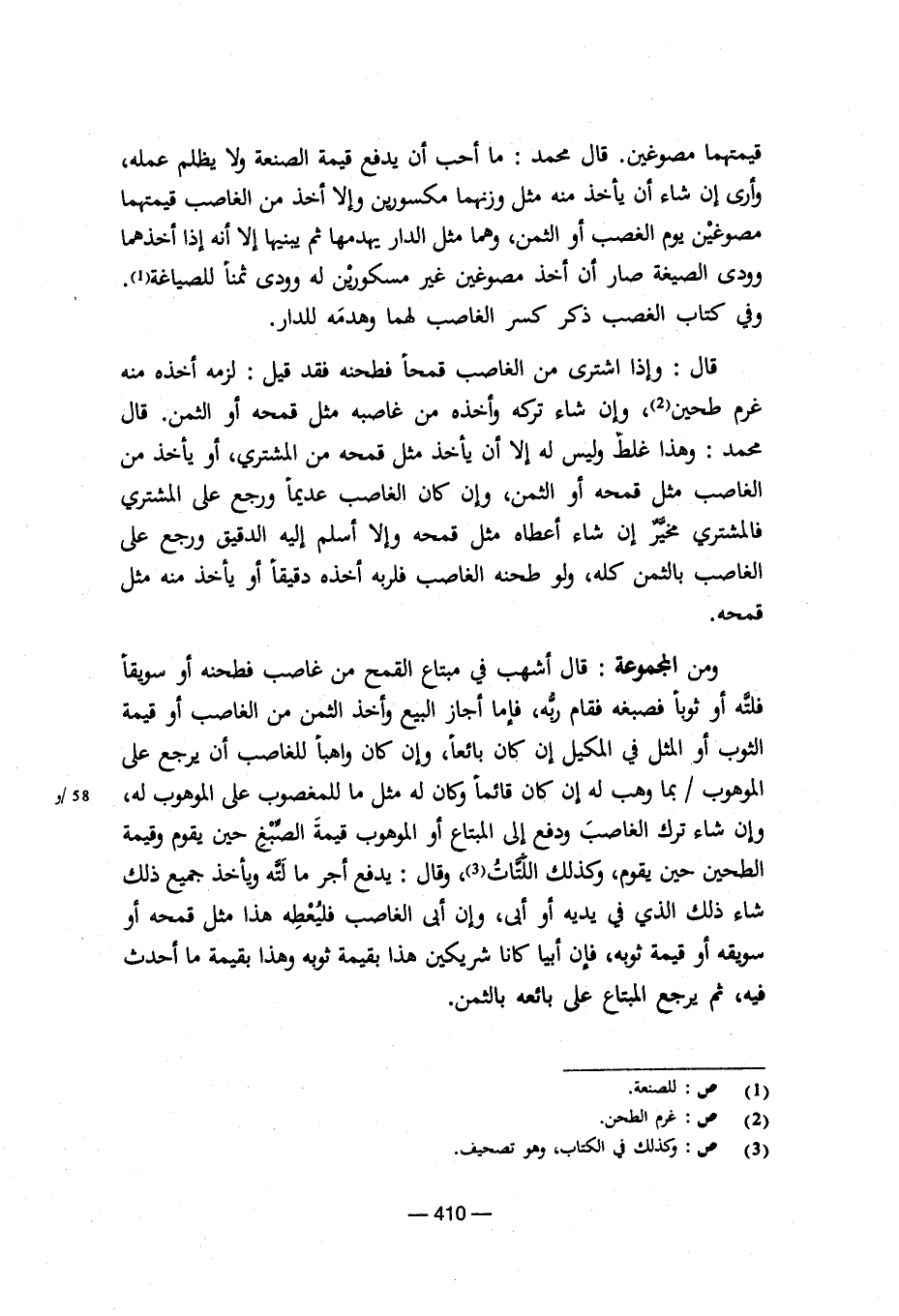 قيمتهما مصوغين. قال محمد: ما أحب أن يدفع قيمة الصنعة ولا يظلم عمله، وأرى إن شاء أن يأخذ منه مثل وزنهما مكسورين وإلا أخذ من الغاصب قيمتهما مصوغين يوم الغصب أو الثمن، وهما مثل الدار يهدمها ثم يبنيها إلا أنه إذا أخذهما وودي الصيغة صار أن أخذ مصوغين غير مسكورين له وودي ثمنا للصياعة.
