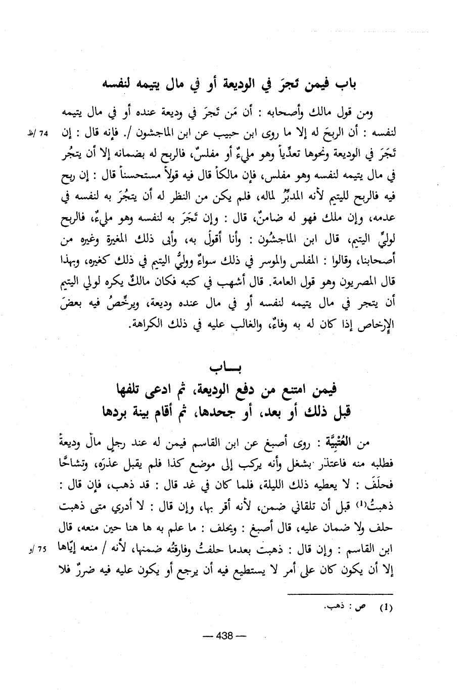باب فين تجر في الوديعة أو في مال يتيمه لنفسه