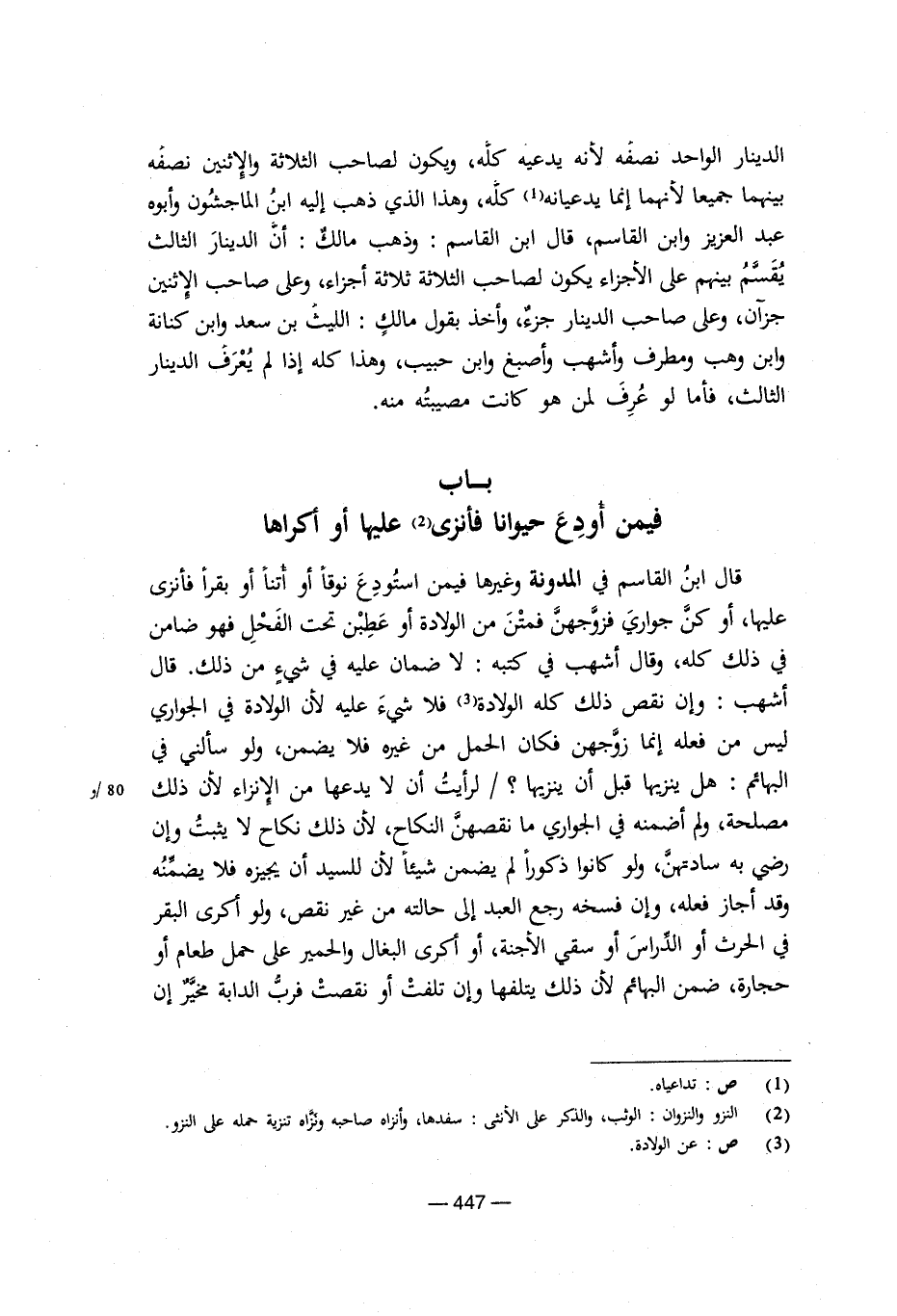 باب فيمن أودع حيوانا فأنزى عليها أو أكراها