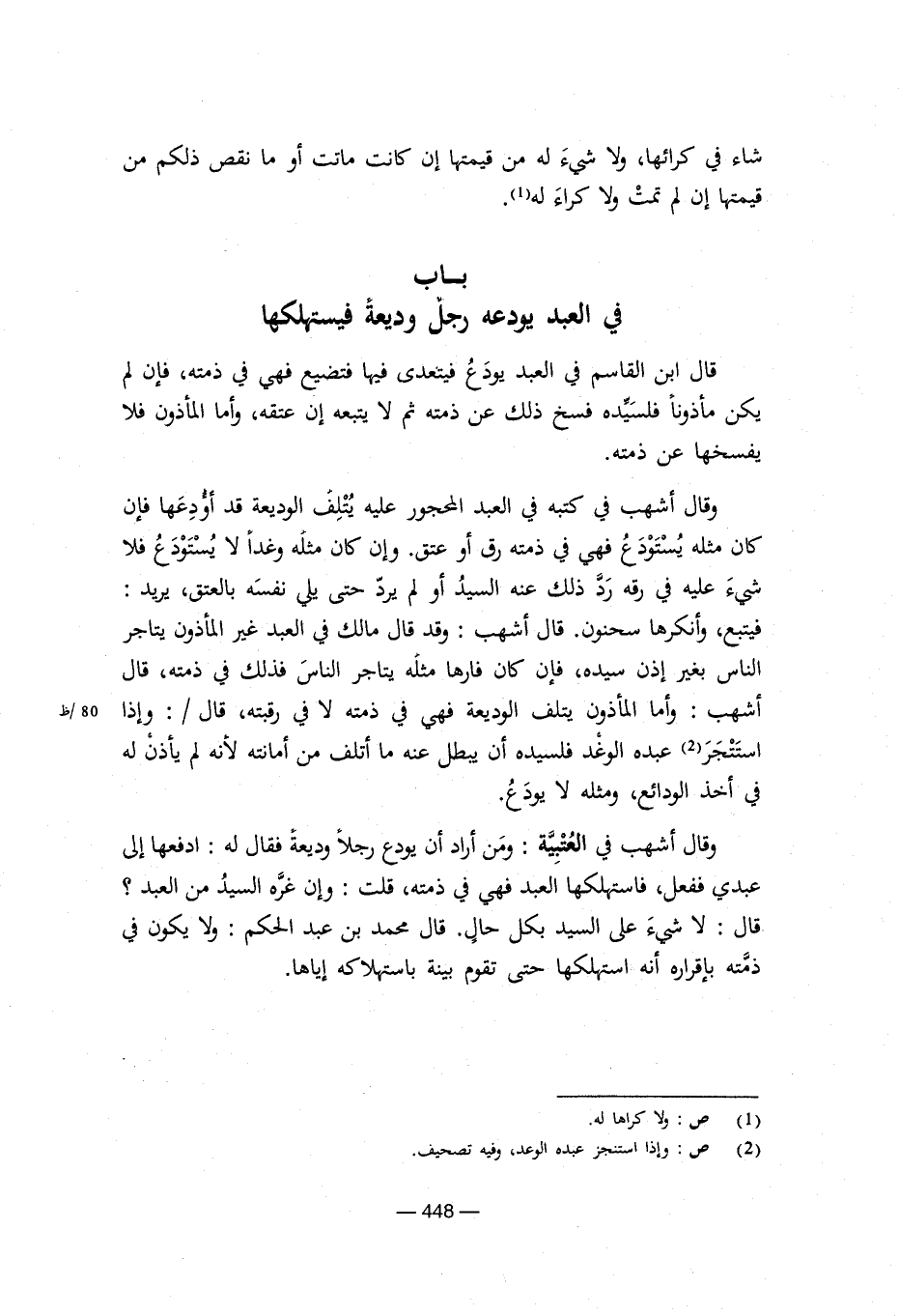 باب في العبد يودعه رجل وديعة فيستهلكها