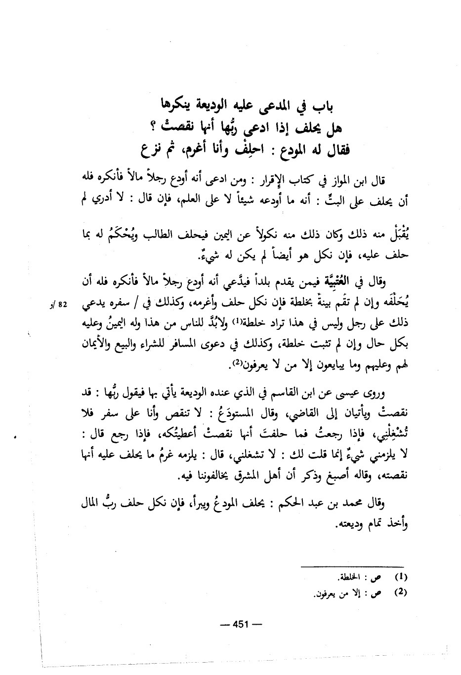 فقال له المودع: احلف وأنا أغرم، ثم نزع