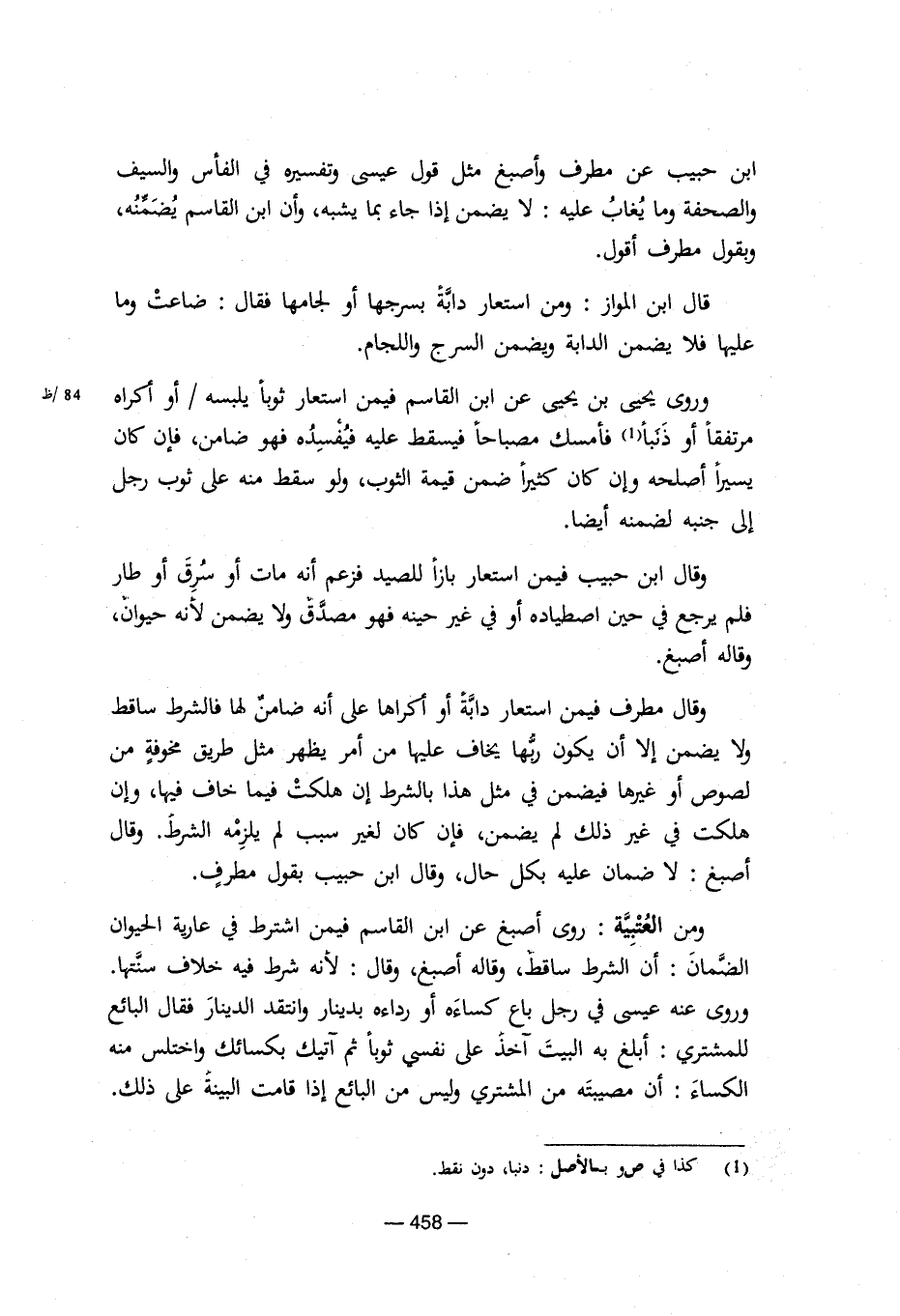 ومن العتبية: روى أصبغ عن ابن القاسم فيمن اشترط في عارية الحيوان الضمان: أن الشرط ساقط، وقاله أصبغ، وقال: لأنه شرط فيه خلاف سنتها.