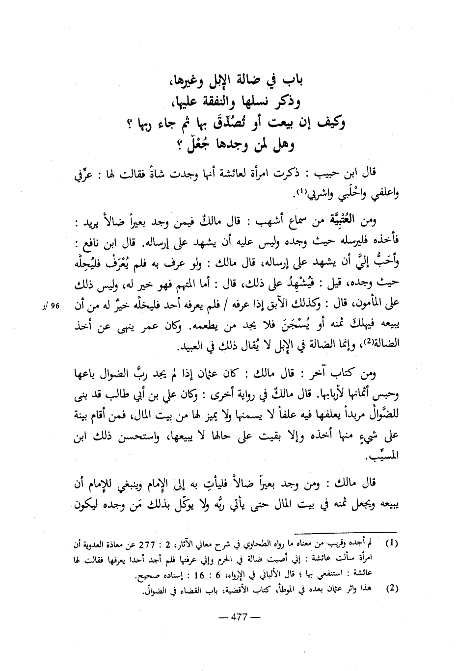 باب في ضالة الإبل وغيرها وذكر نسلها والنفقة عليها، وكيف إن بيعت أو تصدق بها ثم جاء ربها؟