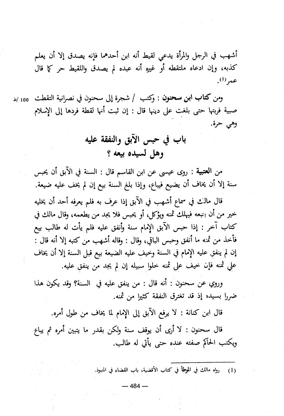 باب في حبس الآبق والنفقة عليه وهل لسيده بيعه؟