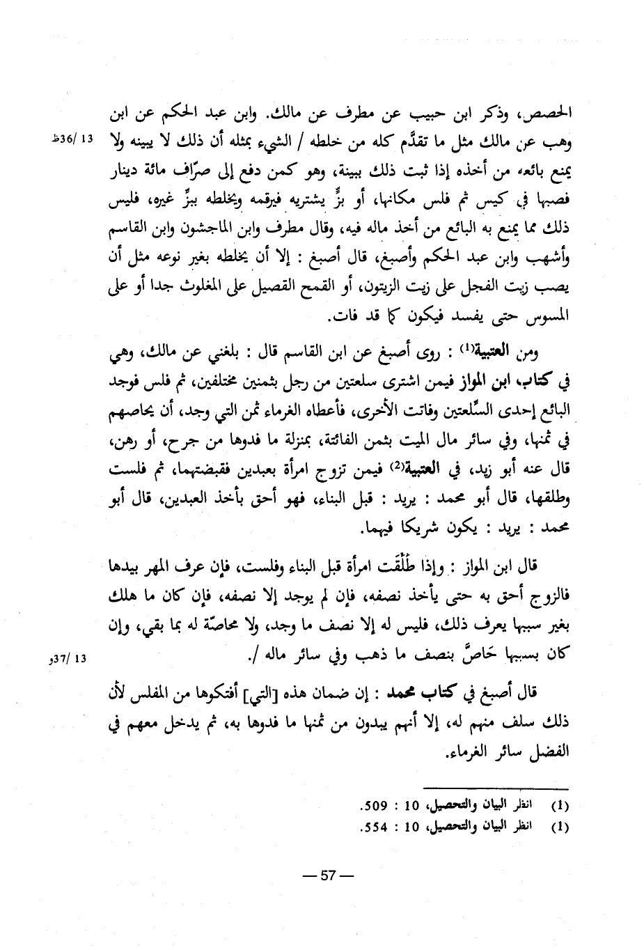الحصص، وذكر ابن الحبيب عن مطرف عن مالك. وابن عبد الحكم عن ابن وهب عن مالك مثل ما تقدم كله من خلطه/الشيء بمثله أن ذلك لا يبينه ولا يمنع بائعه من أخذه إذا ثبت ذلك، وهو كمن دفع صراف مائة دينار فصبها في كيس ثم فلس مكانها، أو بز يشتريه فيرقمه ويخلطه ببز غيره، فليس ذلك مما يمنع به البائع من أخذ ماله فيه، وقال مطرف وابن الماجشون وابن القاسم وأشهب وابن عبد الحكم وأصبغ، قال أصبغ: إلا أن يخلطه بغير نوعه مثل أن يصب زيت الفجل على زيت الزيتون، أو القمح القصيل على المغلوث جدا أو على المسوس حتى يفسد فيكون كما قد فات.