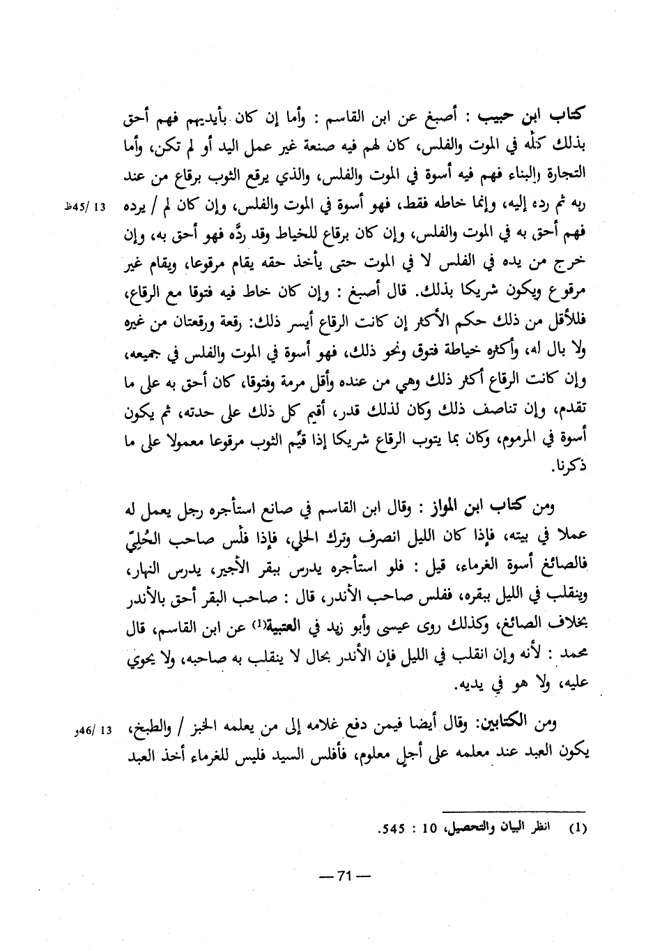 ومن الكتابين: وقال أيضًا فيمن دفع غلامه إلى من يعلمه الخبز/والطبخ يكون العبد عند معلمه على أجل معلوم، فأفلس السيد فليس للغرماء أخذ العبد