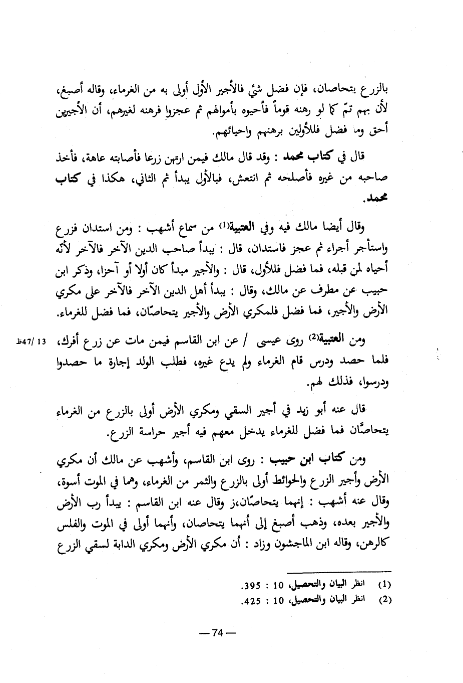وقال أيضًا مالك فيه وفي العتبية من سماع أشهب: ومن استدان فزرع واستأجر أجراء ثم عجز فاستدان، قال: يبدأ صاحب الدين الآخر فالآخر لأنه أحياه لمن قبله، فما فضل فللأول، قال: والأجير مبدأ كان أولا أو آخرا، وذكر ابن حبيب عن مطرف عن مالك، وقال: ويبدأ أهل الدين الآخر فالآخر على مكري الأرض والأجير، فما فضل فلمكري الأرض والأجير يتحاصان، فما فضل للغرماء.