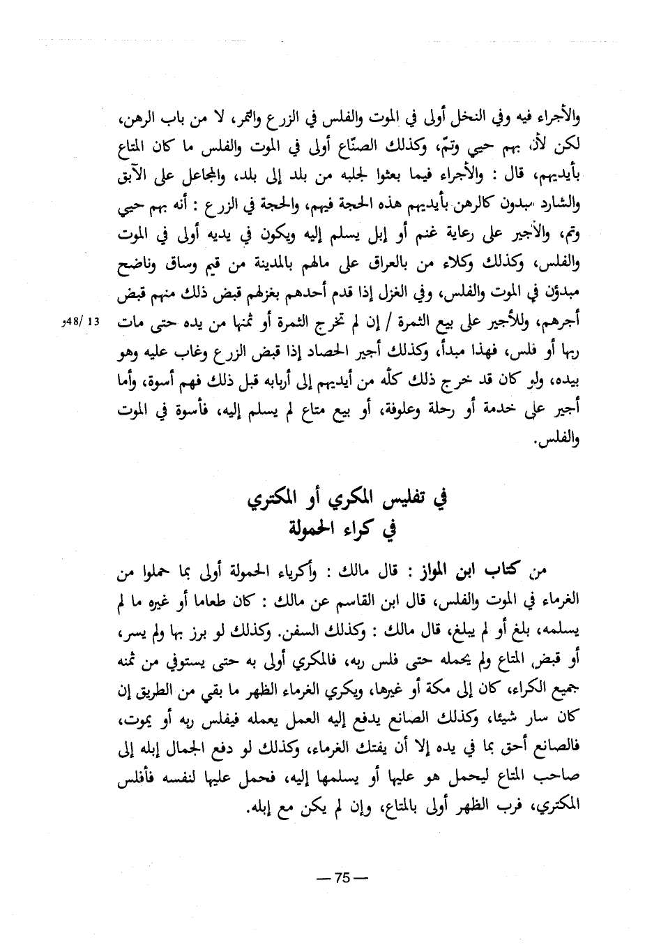 في تفليس المكري أو المكتري في كراء الحمولة