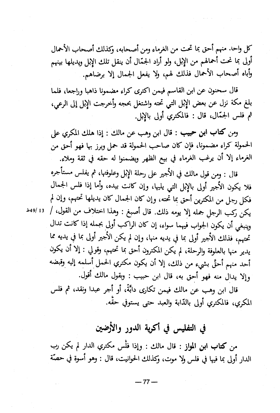 في التفليس في أكرية الدور والأرضين