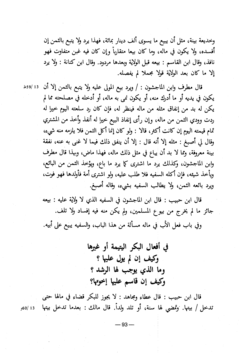 في أفعال البكر اليتيمة أو غيرها وكيف إن لم يول عليها؟ وما الذي يوجب لها الرشد؟ وكيف إن قاسم عليها إخوتها؟