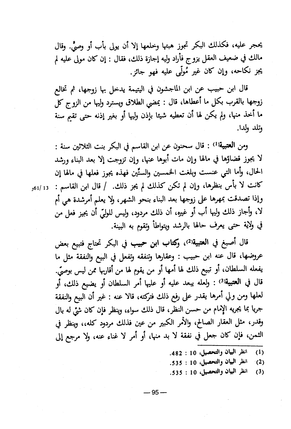 قال أصبغ في العتبية، وكتاب ابن حبيب في البكر تحتاج فتبيع بعض عروضها، قال عنه ابن حبيب: وعقارها وتنفقه وتفعل في البيع والنفقة مثل ما يفعله السلطان، أو تبيع ذلك لها أمها أو من يقوم لها من أقاربها ممن ليس بوصي.