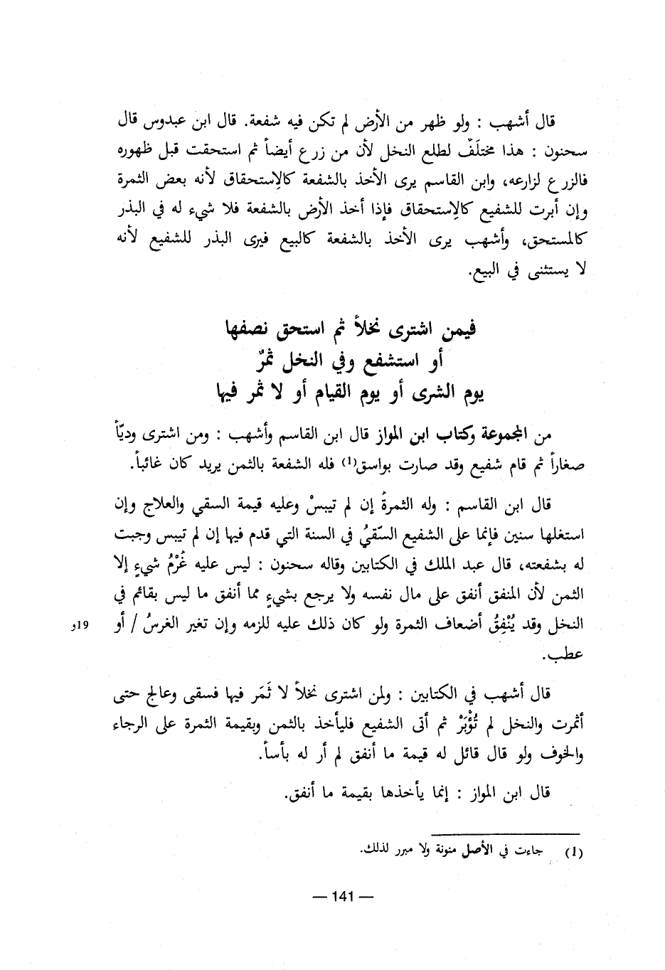 من المجموعة وكتاب ابن المواز قال ابن القاسم وأشهب: ومن اشترى ودياً صغاراً ثم قام شفيع وقد صارت بواسق (¬1) فله الشفعة بالثمن يريد كان غائباً.