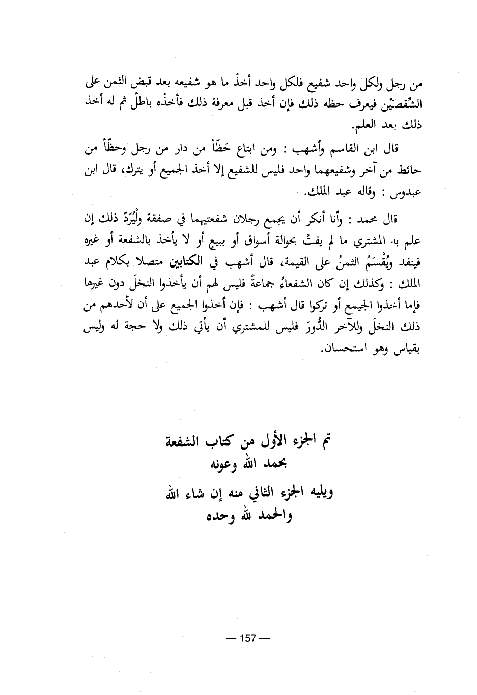 تم الجزء الأول من كتاب الشفعة
