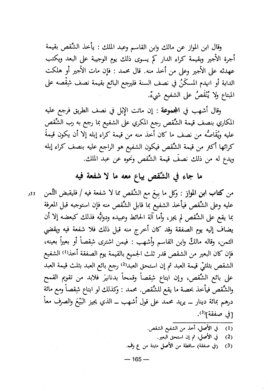 وقال أشهب في المجموعة: إن ماتت الإبل في نصف الطريق فرجع عليه المكاري بنصف قيمة الشقص رجع المكري على الشفيع بما رجع به رب الشقص عليه ويُقاصه من نصف ما كان أخذ منه من قيمة كراء إبله إلا أن يكون قيمة كرائها أكثر من قيمة الشقص فيكون الشفيع هو الراجع عليه بنصف كراء إبله ويدع له من ذلك نصف قيمة الشقص ونحوه عن عبد الملك.