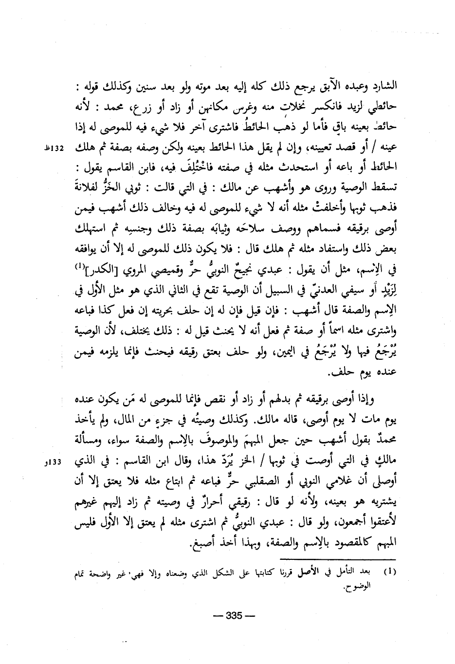 وإذا أوصى برقيقه ثم بدلهم أو زاد أو نقص فإنما للموصى له من يكون عنده يوم مات لا يوم أوصى، قاله مالك. وكذلك وصيتُه في جزءٍ من المال، ولم يأخذ محمدٌ بقول أشهب حين جعل المبهم والموصوف بالاسم والصفة سواء، ومسألة مالكٍ في التي أوصت في ثوبها/ الخز يُرد هذا، وقال ابن القاسم: في الذي أوصلى أن غلامي النوبي أو الصقلبي حر فباعه ثم ابتاع مثله فلا يعتق إلا أن يشتريه هو بعينه، ولأنه لو قال: رقيقي أحرارٌ في وصيته ثم زاد إليهم غيرهم لأعتقوا أجمعون، ولو قال: عبدي النوبي ثم اشترى مثله لم يعتق إلا الأول فليس المبهم كالمقصود بالاسم والصفة، وبهذا أخذ أصبغ.