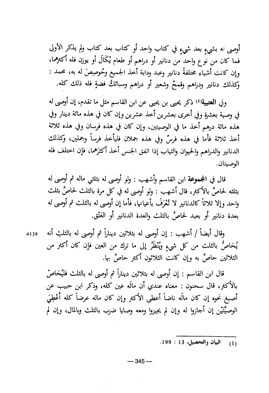 (¬1) البيان والتحصيل، 13: 199.