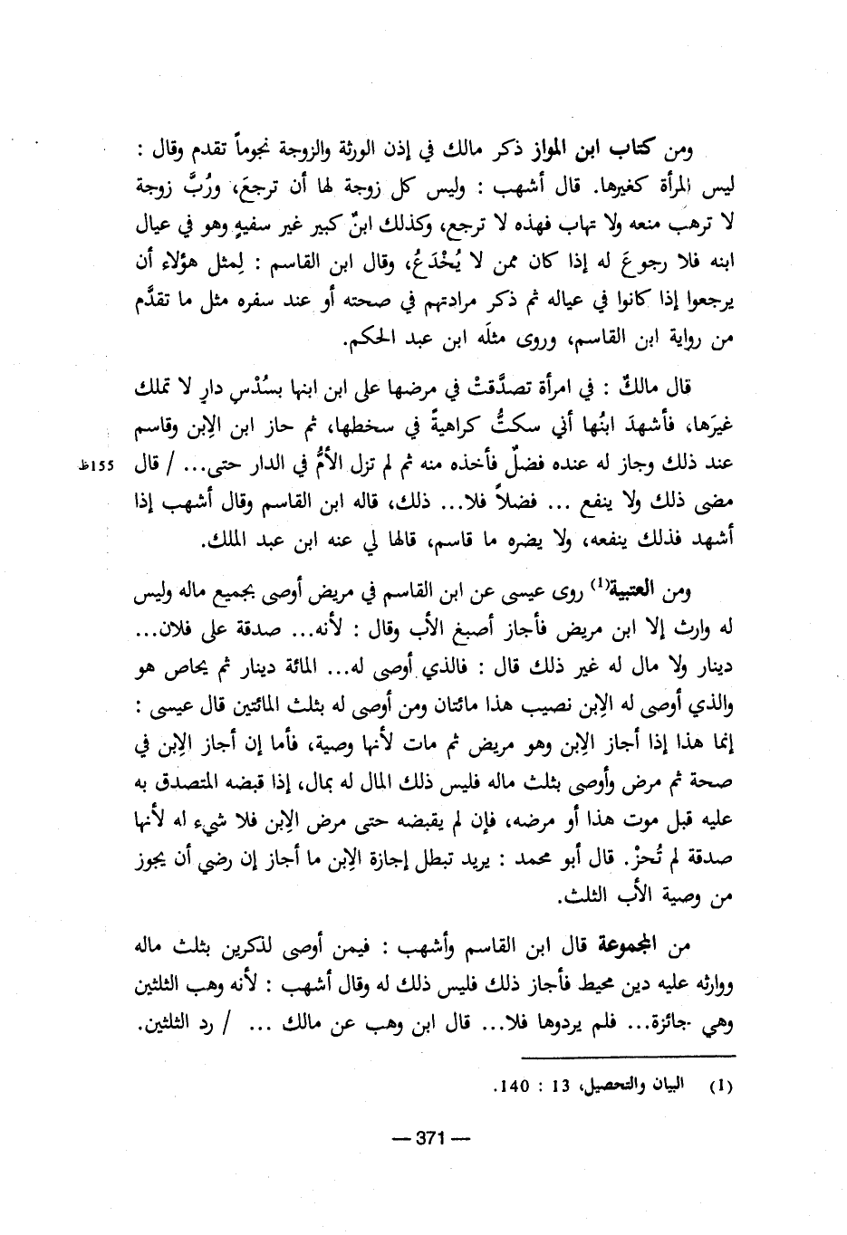 (¬1) البيان والتحصيل، 13: 140.