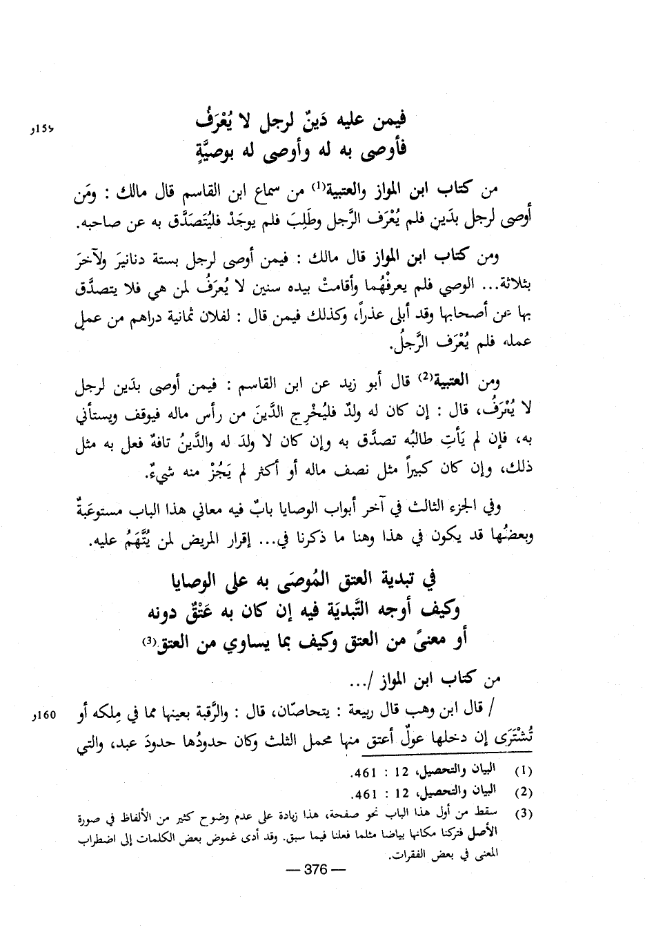 (¬2) البيان والتحصيل، 12: 461.