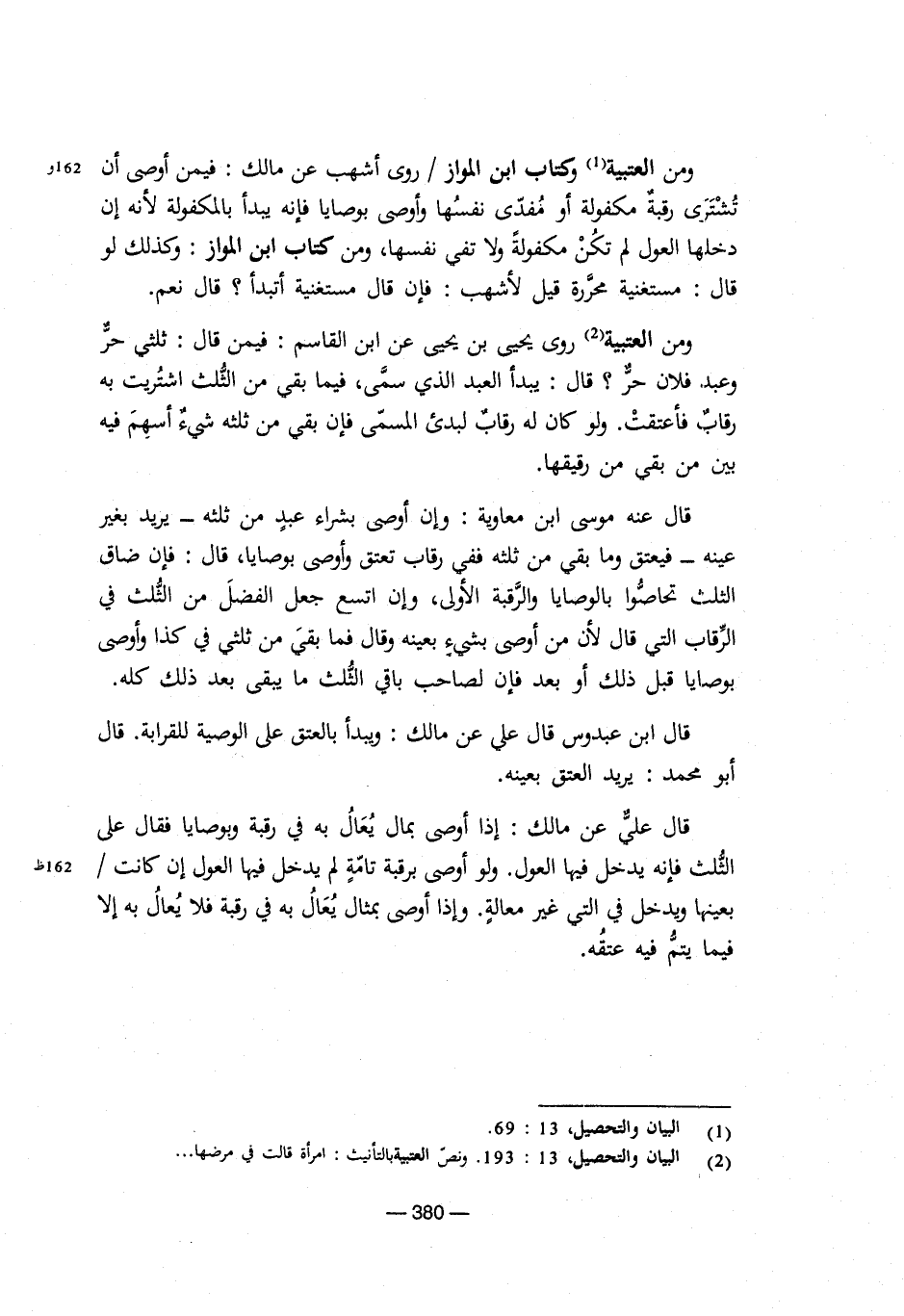 (¬2) البيان والتحصيل، 13: 193. ونص العتبية بالتأنيث: امرأة قالت في مرضها ...