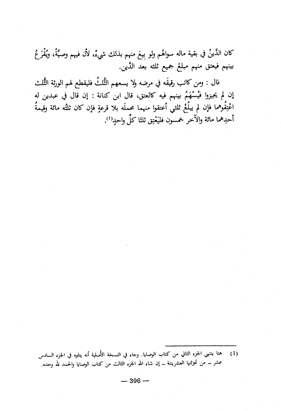 (¬1) هنا ينتهي الجزء الثاني من كتاب الوصايا. وجاء في النسخة الأصلية أنه يتلوه في الجزء السادس عشر – من تجزئتها العشرينتة- إن شاء الله الجزء الثالث من كتاب الوصايا والحمد لله وحده.
