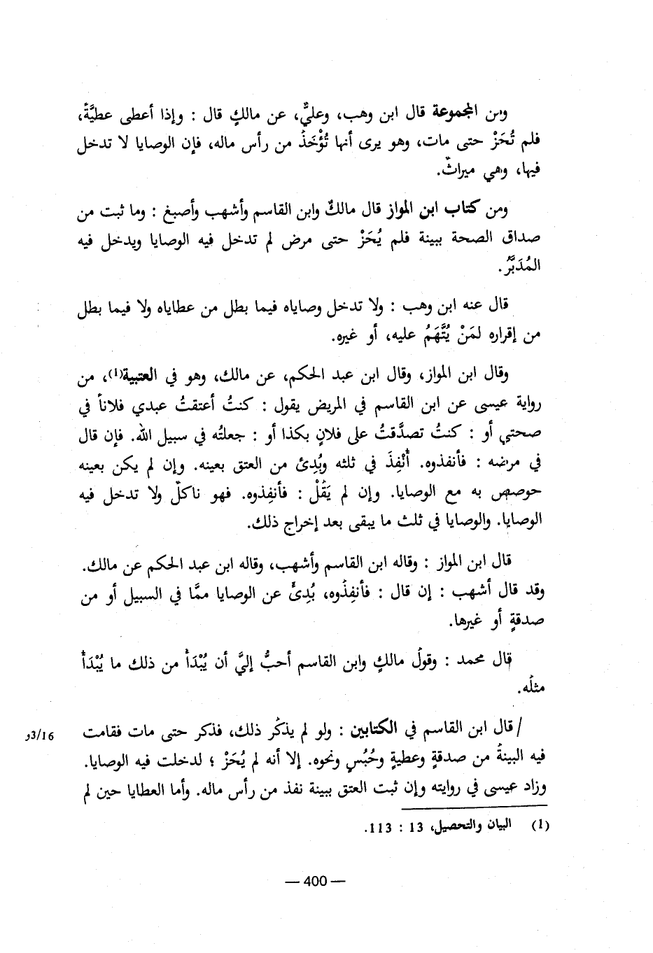 (¬1) البيان والتحصيل، 13: 113.