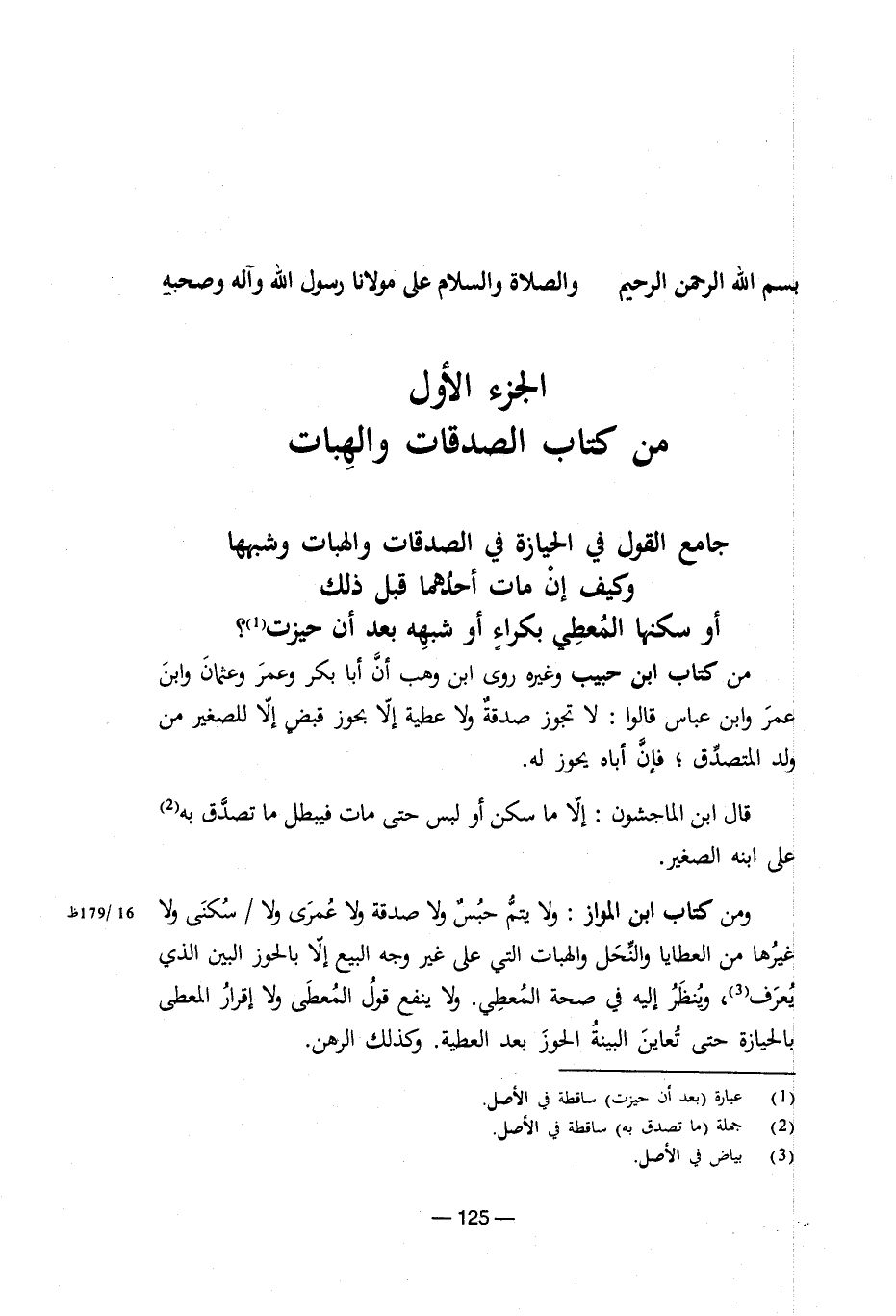 جامع القول في الحيازة في الصدقات والهبات وشبهها وكيف إن مات أحدهما قبل ذلك أو سكنها المُعطِي بكراء أو شبهه بعد أن حيزت (¬1)؟ من كتاب ابن حبيب وغيره روى ابن وهب أن أبا بكر وعمر وعثمان وابن عمر وابن عباس قالوا: لا تجوز صدقة ولا عطية إلا بحوز قبض إلا للصغير من ولد المتصدق؛ فإن أباه يحوز له. قال ابن الماجشون: إلا ما سكن أو لبس حتى مات فيبطل ما تصدق به (¬2) على ابنه الصغير. ومن كتاب ابن المواز: ولا يتم حبس ولا صدقة ولا عمرى ولا/ سكنى ولا غيرها من العطايا والنحل والهبات التي على غير وجه البيع إلا بالحوز البين الذي يُعرَف (¬3)، ويُنظَرُ إليه في صحة المعطى. ولا ينفع قول المعطى ولا إقرار المعطى بالحيازة حتى تُعايَن البينة الحوز بعد العطية. وكذلك الرهن.