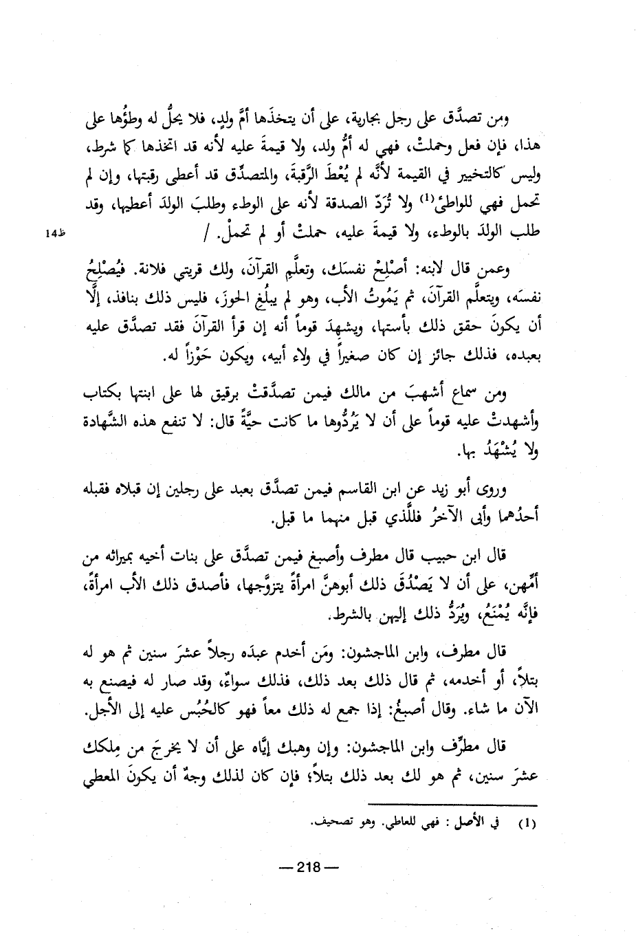 ومن تصدق على رجل بجارية، على أن يتخذها أم ولد، فلا يحل له وطؤها على هذا، فإن فعل وحملت، فهي له أم ولد، ولا قيمة عليه لأنه قد اتخذها كما شرط، وليس كالتخيير في القيمة لأنه لم يعط الرقبة، والمتصدق قد أعطى رقبتها، وإن لم تحمل فهي للواطىء (¬1) ولا ترد الصدقة لأنه على الوطء وطلب الولد أعطيها، وقد طلب الولد بالوطء، ولا قيمة عليه، حملت أو لم تحمل./ وعمن قال لابنه: أصلح نفسك، وتعلم القرآن، ولك قريتي فلانة. فيصلح نفسه، ويتعلم القرآن، ثم يموت الأب، وهو لم يبلغ الحوز، فليس ذلك بنافذ، إلا أن يكون حقق ذلك بأستها، ويشهد قوما أنه إن قرأ القرآن فقد تصدق عليه بعبده، فذلك جائز إن كان صغيرا في ولاء أبيه، ويكون حوزا له. ومن سماع أشهب من مالك فيمن تصدقت برقيق لها على ابنتها بكتاب وأشهدت عليه قوما على أن لا يردوها ما كانت حية قال: لا تنفع هذه الشهادة ولا يشهد بها. وروى أبو زيد عن ابن القاسم فيمن تصدق بعبد على رجلين إن قبلاه فقبله أحدهما وأبى الآخر فللذي قبل منهما ما قبل. قال ابن حبيب قال مطرف وأصبغ فيمن تصدق على بنات أخيه بميراثه من أمهن، على أن لا يصدق ذلك أبوهن امرأة يتزوجها، فأصدق ذلك الأب امرأة، فإنه يمنع، ويرد ذلك إليهن بالشرط. قال مطرف، وابن الماجشون: ومن أخدم عبده رجلا عشر سنين ثم هو له بتلا، أو أخدمه، ثم قال ذلك بعد ذلك، فذلك سواء، وقد صار له فيصنه به الآن ما شاء. وقال أصبغ: إذا جمع له ذلك معا فهو كالحبس عليه إلى الأجل. قال مطرف وابن الماجشون: وإن وهبك إياه على أن لا يخرج من ملكك عشر سنين، ثم هو لك بعد ذلك بتلا؛ فإن كان لذلك وجه أن يكون المعطي