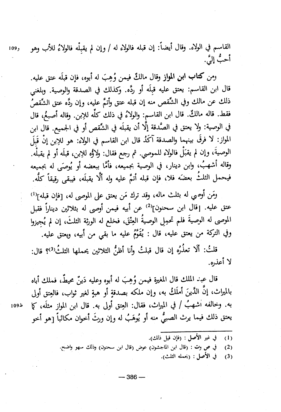 (¬2) فى ص وت (قال ابن الماجشون) عوض (قال ابن سحنون) وذلك سهو واضح)