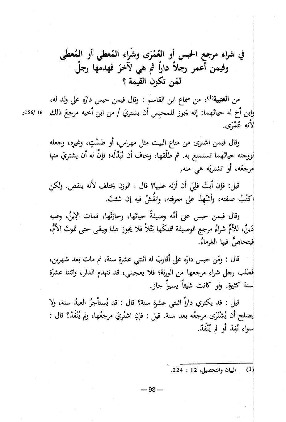 (¬1) البيان والتحصيل، 12: 224.
