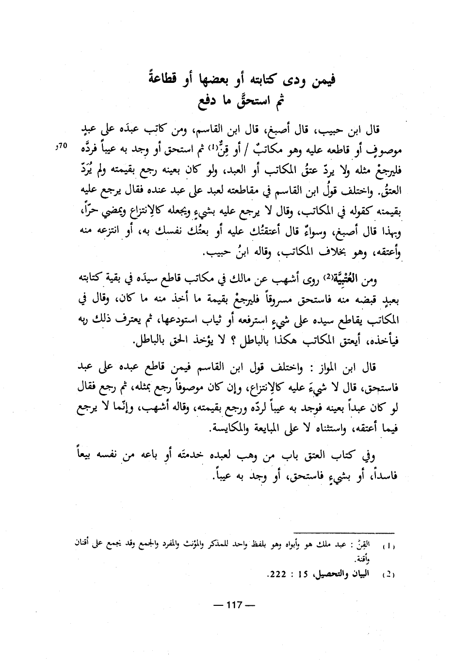 (¬2) البيان والتحصيل، 15: 222.