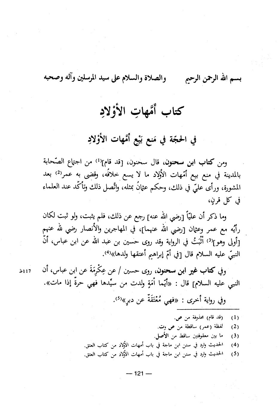 (¬5) الحديث وارد في سنن ابن ماجة في باب أمهات الأولاد من كتاب العتق.