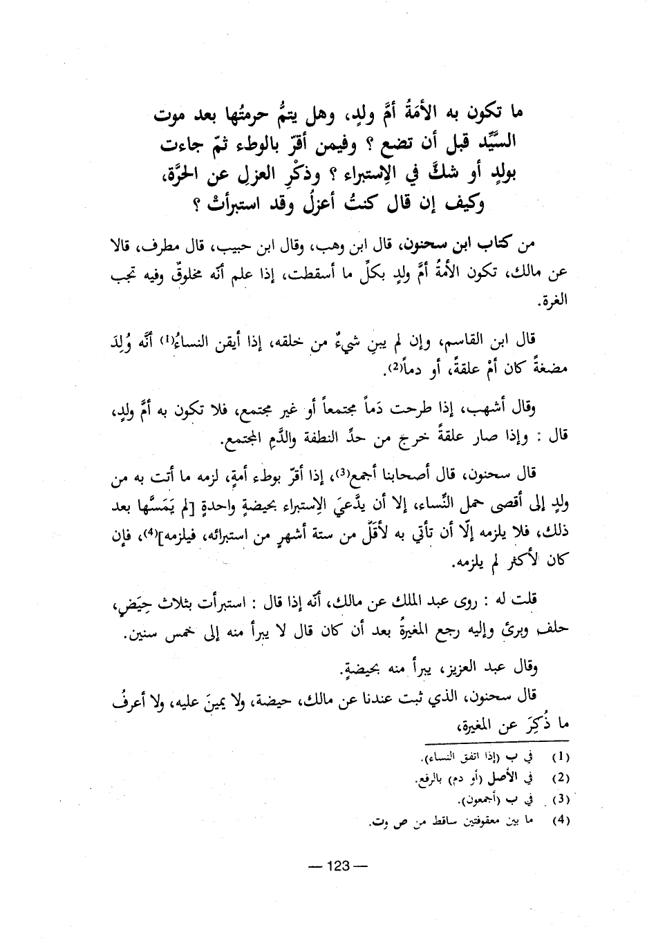 قال سحنون، الذي ثبت عندنا عن مالك، حيضة، ولا يمين عليه، ولا أعرف ما ذكر عن المغيرة،