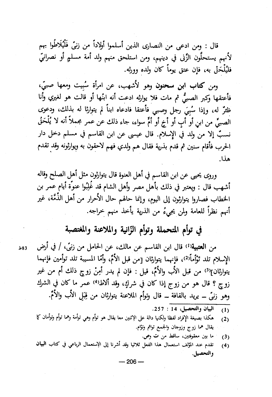 (¬1) البيان والتحصيل، 14: 257.