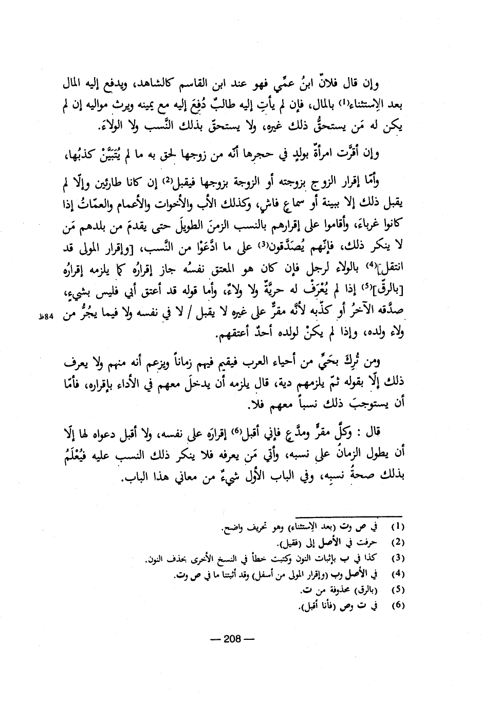 قال: وكل مقر ومدع فإني أقبل (¬6) إقراره على نفسه، ولا أقبل دعواه لها إلا أن يطول الزمان على نسبه، وأتي من يعرفه فلا ينكر ذلك النسب عليه فيعلم بذلك صحة نسبه، وفي الباب الأول شيء من معاني هذا الباب.