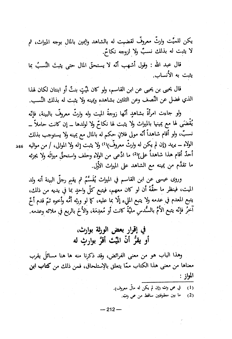 وهذا الباب هو من معنى الفرائض، وقد ذكرنا منه ها هنا مسائل يقرب معناها من معنى هذا الكتاب مما يتعلق بالاستلحاق، فمن ذلك من كتاب ابن المواز: